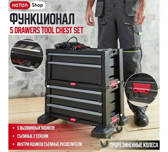 Ящик для инструментов Keter 5 DRAWERS TOOL CHEST SET блок из 5 секций для инструмента 237007