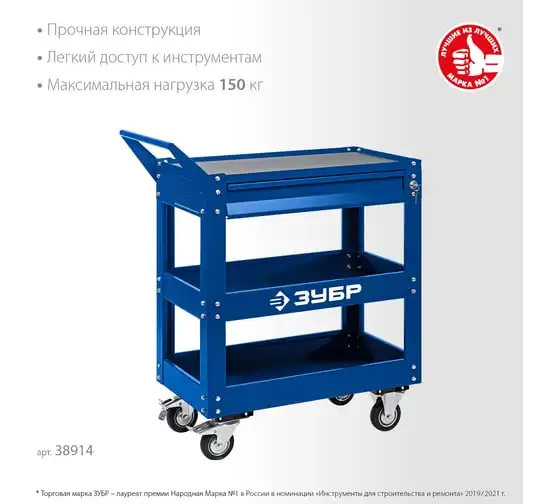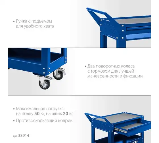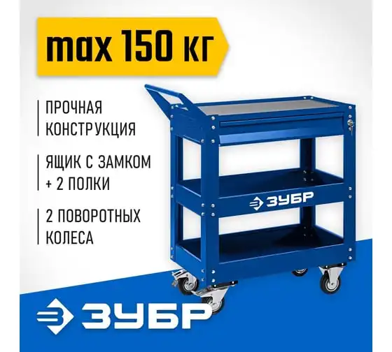 Инструментальная тележка ЗУБР 1 ящик + 2 полки, 737x383x785 мм 38912