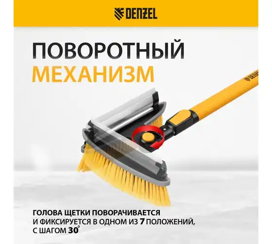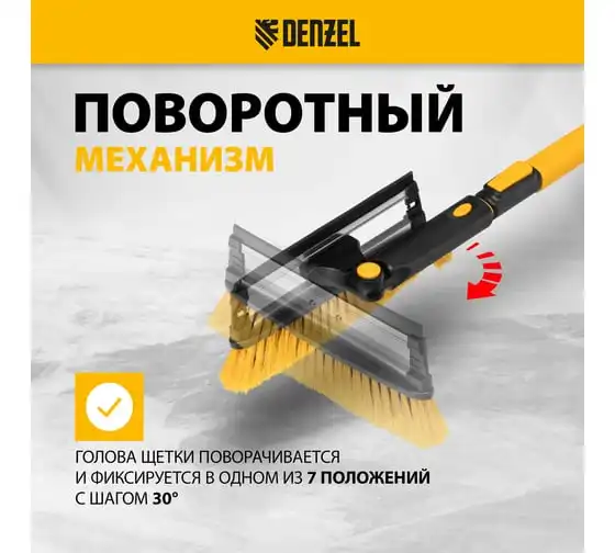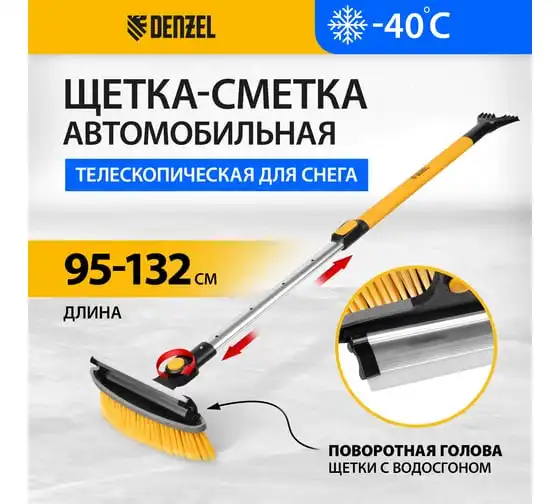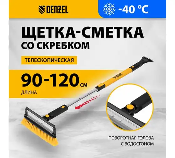 Щетка-сметка для снега Denzel со скребком, телескоп, поворотная голова, водосгон, 900-1200 мм. 55308