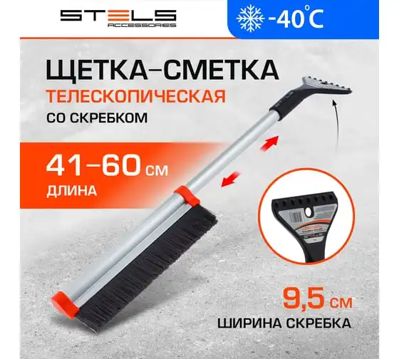 Щетка для машины от снега STELS 41-60 см, скребок 9.5 см // 55311