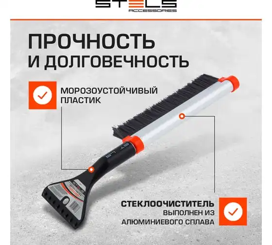 Щетка для машины от снега STELS 63 см, скребок 10 см // 55303