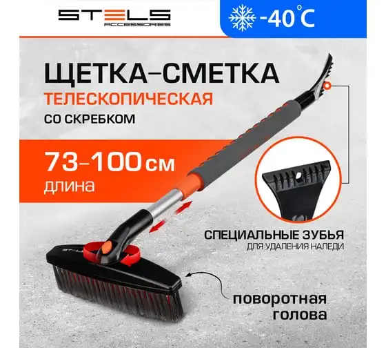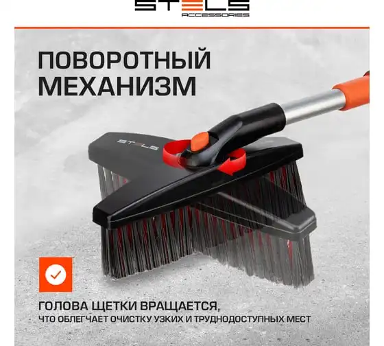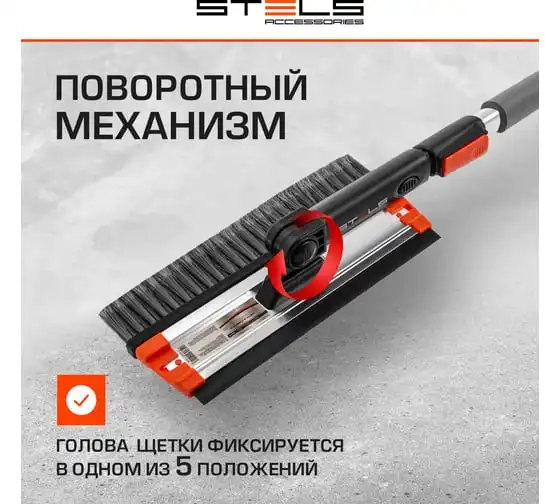 Телескопическая щетка-сметка для снега со скребком и водосгоном, поворотная голова STELS 55299