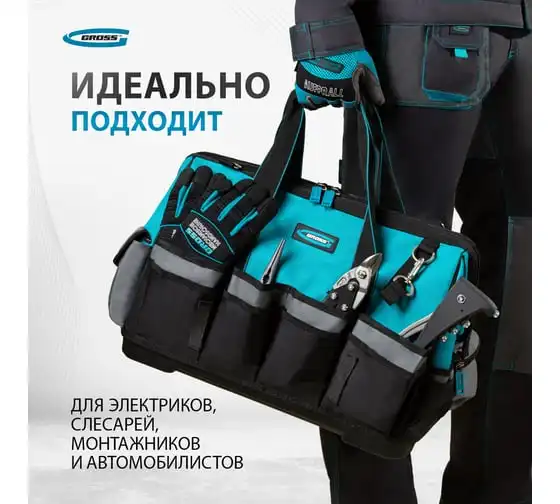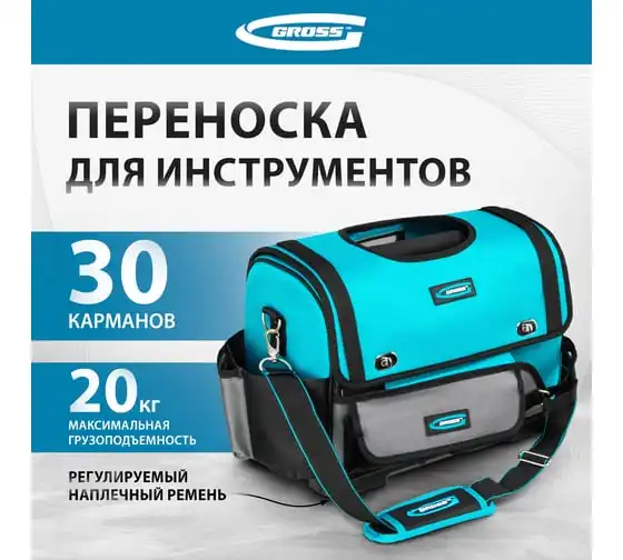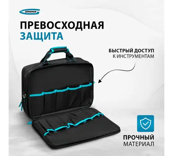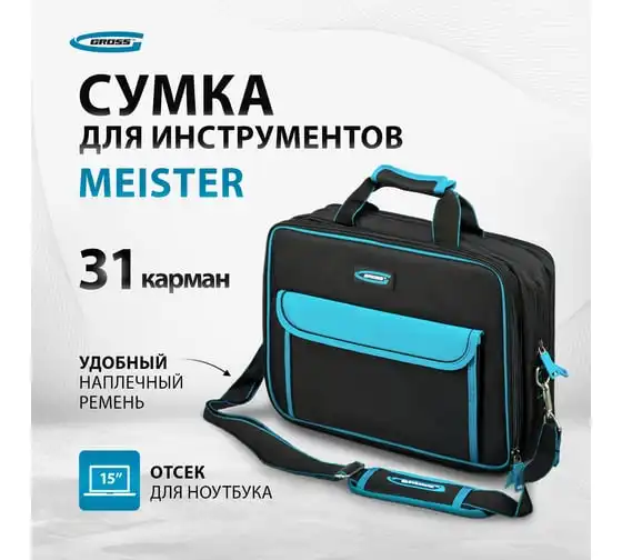 Сумка для инструмента GROSS Meister, 31 карман, отсек для ноутбука, наплечный ремень 90271