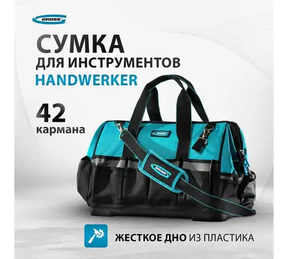 Сумка для инструмента GROSS Handwerker, 42 кармана, пластик, дно, наплечный ремень 90273