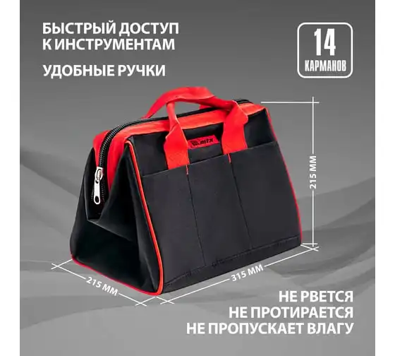 Сумка для инструмента WORTEX WB 3037 оксфорд, 370x300x300 мм, вес до 25 кг 1323694