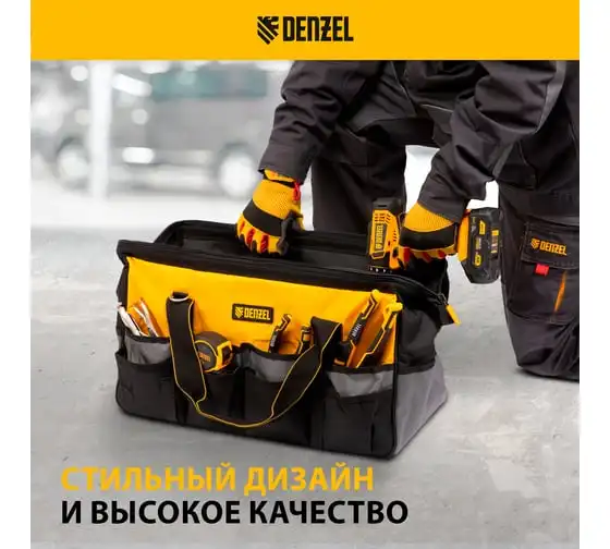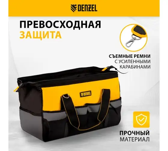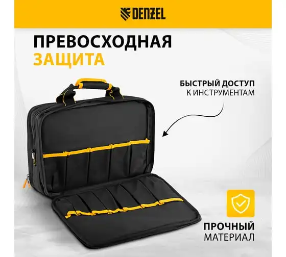 Сумка для инструмента Denzel 500x245x300 мм, 20 карманов, съемный органайзер 10 карманов, наплечный ремень 90293