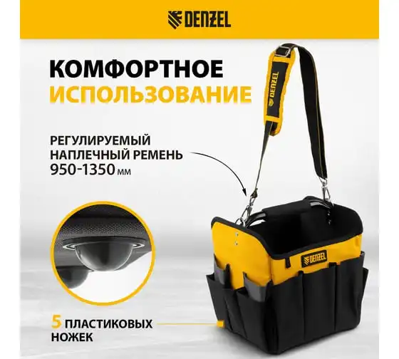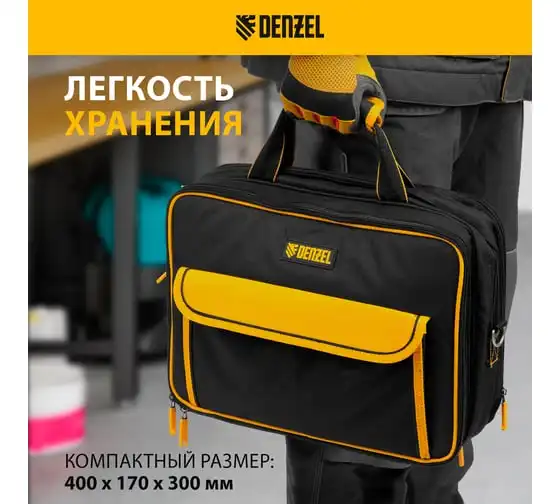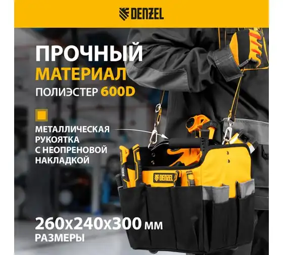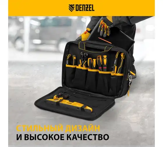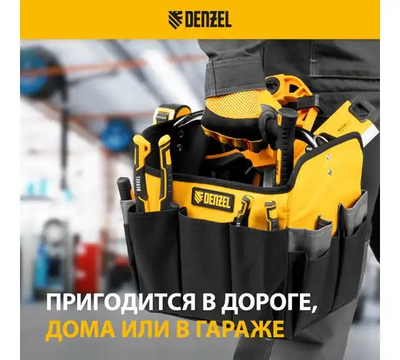 Переноска для инструмента Denzel 260x240x300 мм, 22 кармана, наплечный ремень 90294