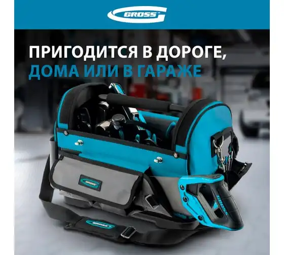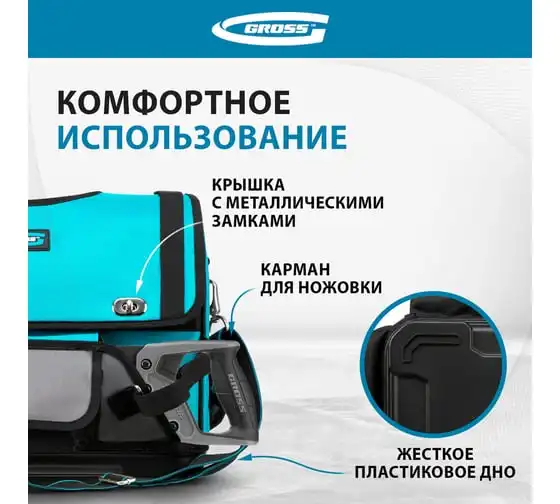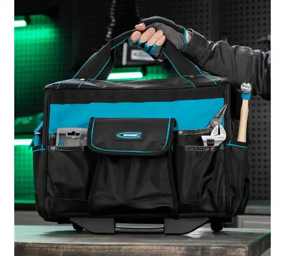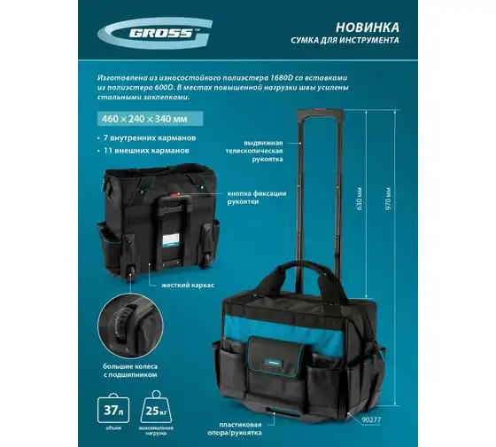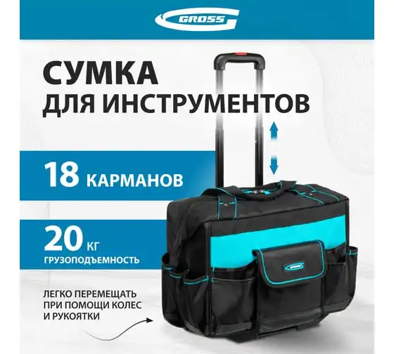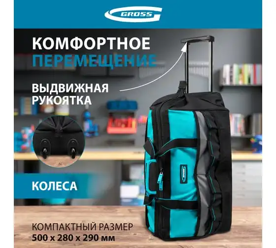 Сумка для инструмента GROSS 500x280x290 мм, выдвижная рукоятка, колеса, наплечный ремень 90276