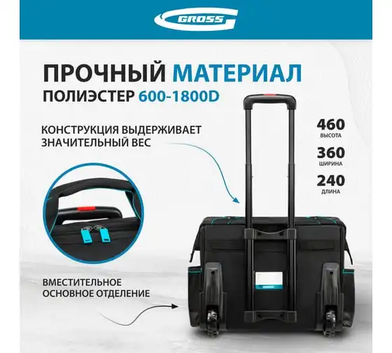 Сумка для инструмента GROSS 460x240x340мм, выдвижная рукоятка, колеса 90277