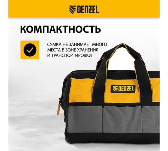 Сумка для инструмента Denzel 500x245x300 мм, 20 карманов, съемный органайзер 10 карманов, наплечный ремень 90293