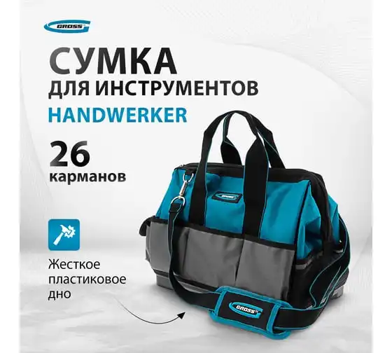 Сумка для инструмента GROSS Handwerker, 26 карманов, пластик, дно, наплечный ремень 90272