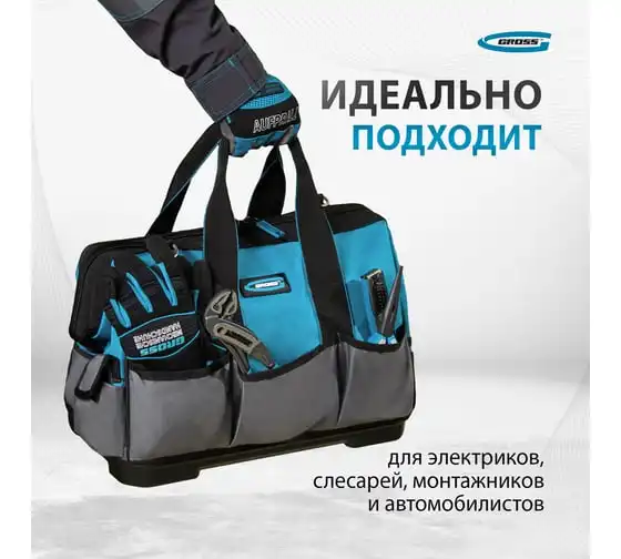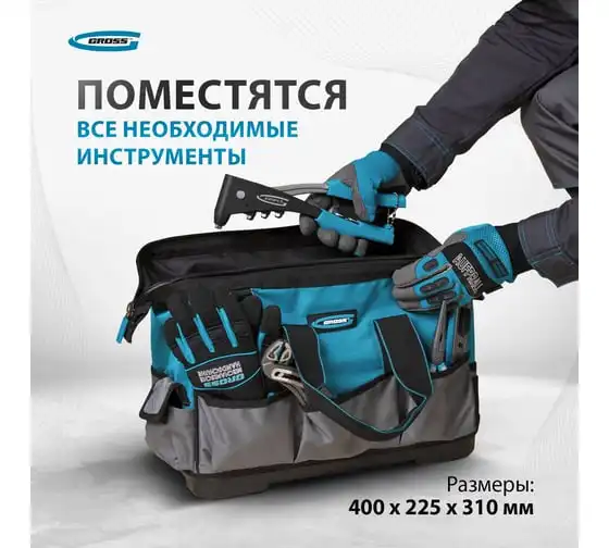 Переноска для инструмента GROSS 400x225x300 мм, пластиковое дно, наплечный ремень 90274