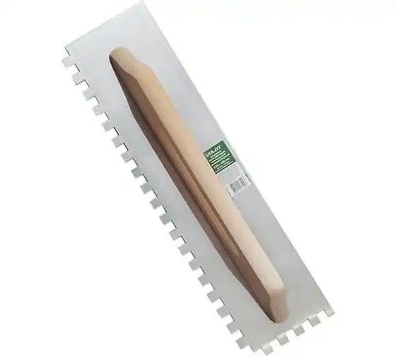 Швейцарская гладилка ВОЛАТ нержавеющая сталь, с деревянной ручкой, 130x480 мм, зуб 10x10 мм 28100-1310