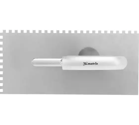 Гладилка стальная, 280 х 130 мм, зеркальная полировка, пластмассовая ручка, зуб 10 х 10 мм MATRIX 86779