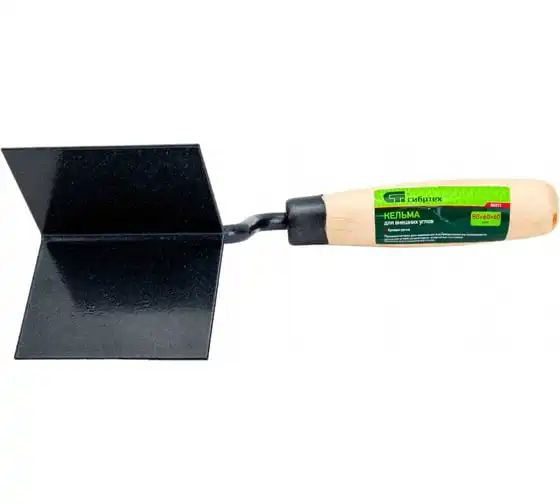 Угловая кельма СИБРТЕХ 80x60x60 мм, стальная, для внешних углов, буковая ручка 86311