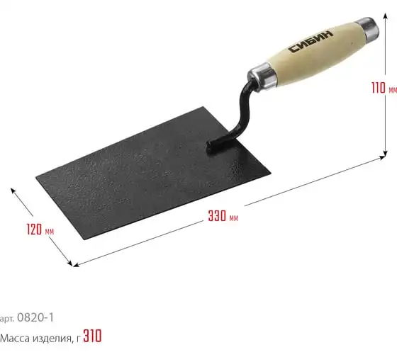 Кельма штукатура с деревянной усиленной ручкой СИБИН КШ 0820-3_z01