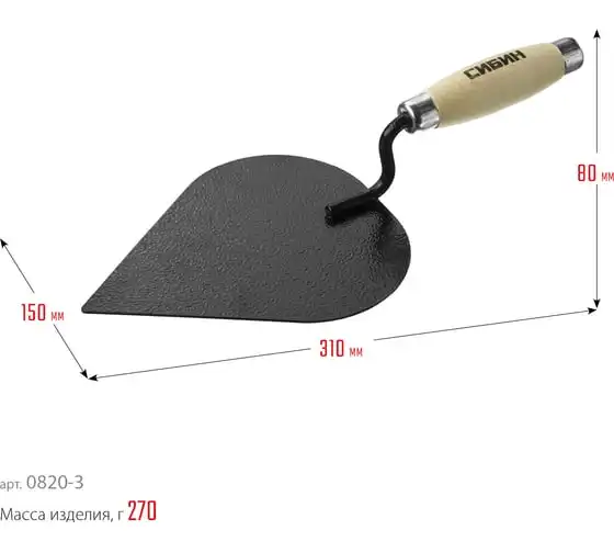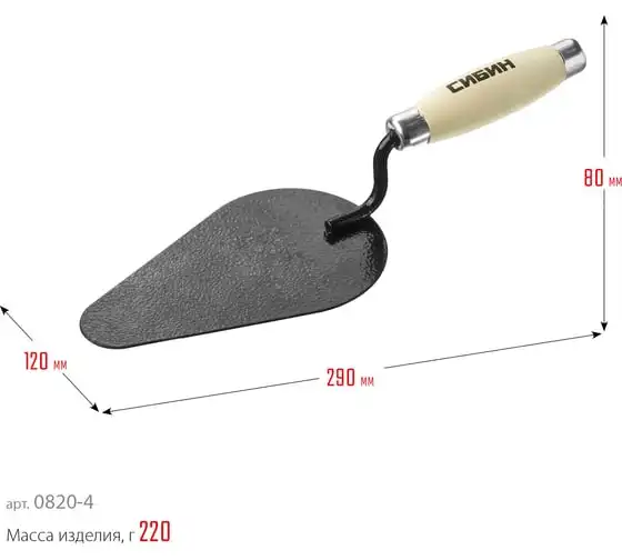 Кельма каменщика с деревянной усиленной ручкой СИБИН КК 0820-5_z01