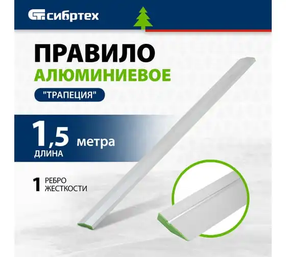 Алюминиевое правило Трапеция СИБРТЕХ 1 ребро жесткости, 1.5м 89608