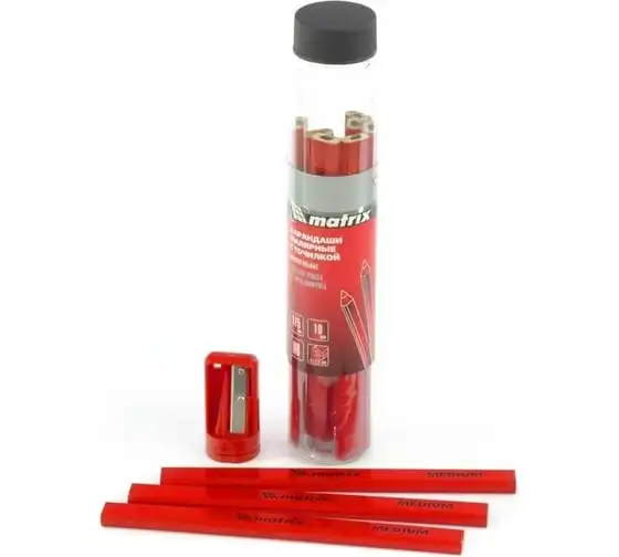 Набор малярных прямоугольных карандашей с точилкой в тубе MATRIX 175мм 10шт 84814