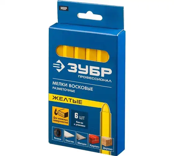 Разметочные восковые мелки ЗУБР МВР желтые, 6 шт 06330-5