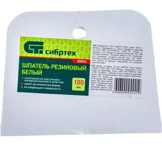 Шпатель СИБРТЕХ белая резина 100 мм Россия 85834