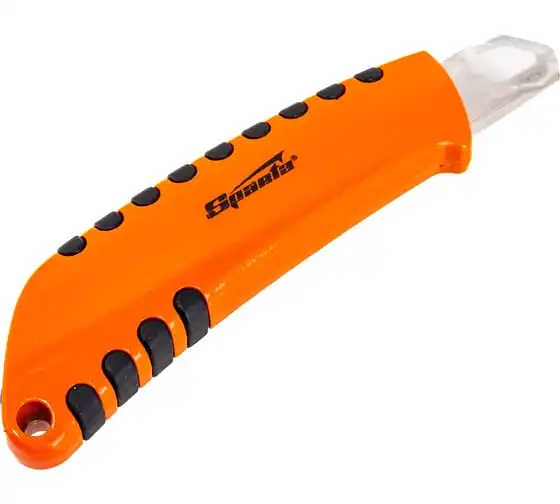 Нож SPARTA, 18 мм, складной, пластиковая двухкомп рукоятка ,сменное трапециевидное лезвие,+5 лезв.// 78981
