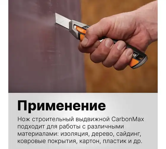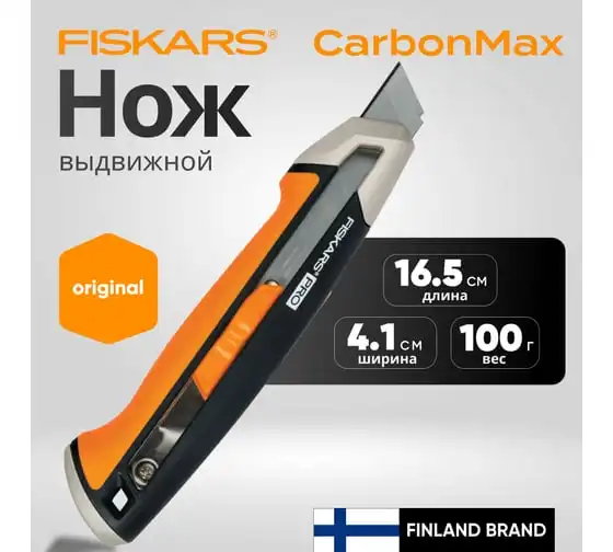 Строительный нож с выдвижным сменным лезвием Fiskars 18мм CarbonMax 1027227