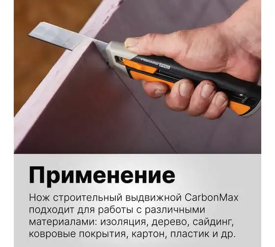Строительный нож с выдвижным сменным лезвием Fiskars 25мм CarbonMax 1027228