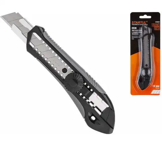 Канцелярский нож STARTUL выдвижной 18 мм Black Line ST0924
