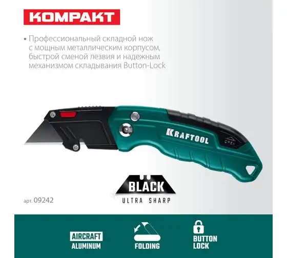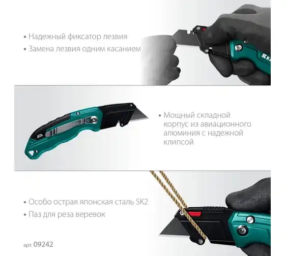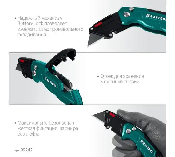 Компактный складной нож с трапециевидным лезвием KRAFTOOL Helfer тип А24 09242