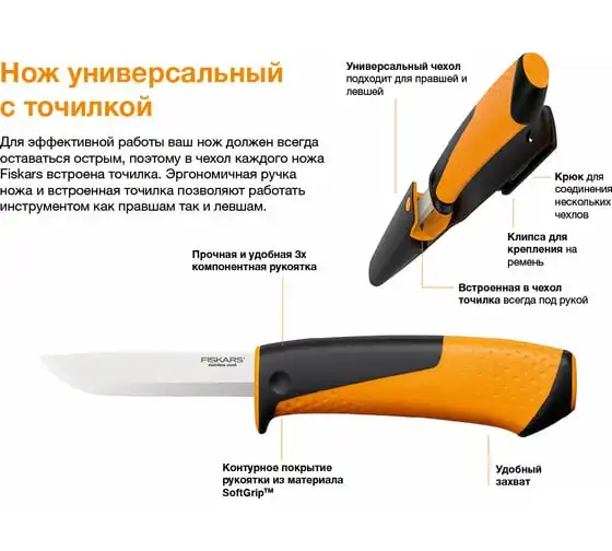 Универсальный нож с точилкой Fiskars 1023618