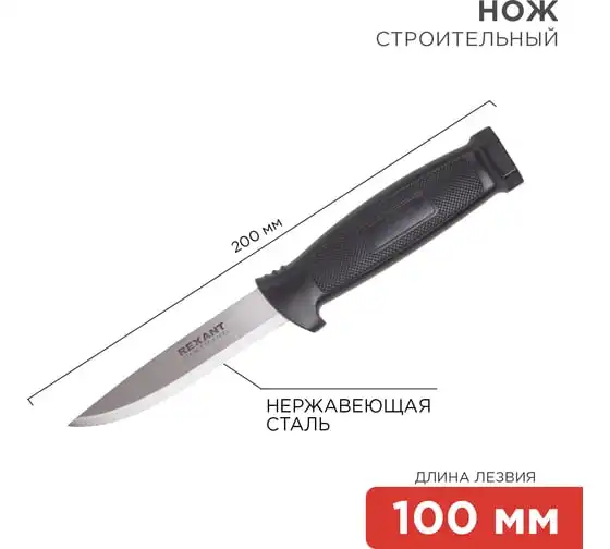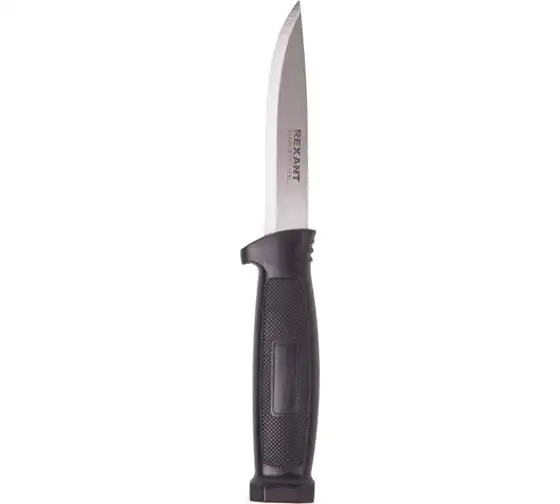 Универсальный нож с чехлом, обрезиненная рукоятка, 220 мм, лезвие - 100 мм СИБРТЕХ 79015