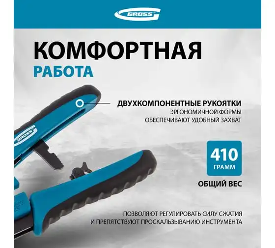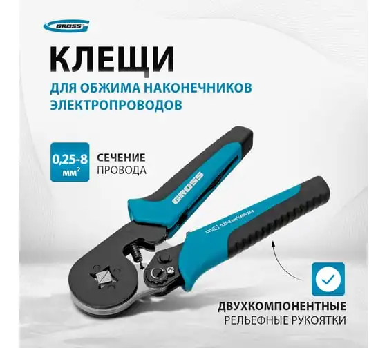 Клещи для обжима наконечников электропроводов с сечением 0,25-8 мм2 GROSS 17724