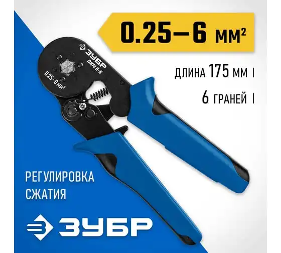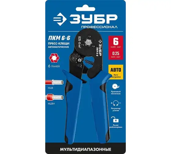 Пресс-клещи ЗУБР Профессионал ПКМ-6-6 мультидиапазонные, для втулочных наконечников, 0.25 - 6 мм.кв 22654_z01