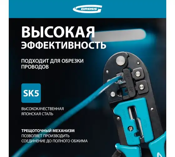Кримпер для обжима телефонных и компьютерных клемм GROSS 17719