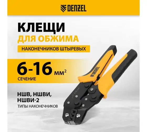 Клещи для обжима наконечников штыревых НШВ, НШВИ, НШВИ-2 Denzel 6-16 кв. мм 17744