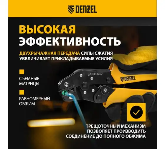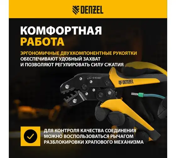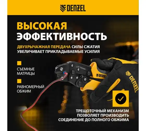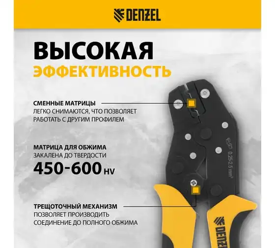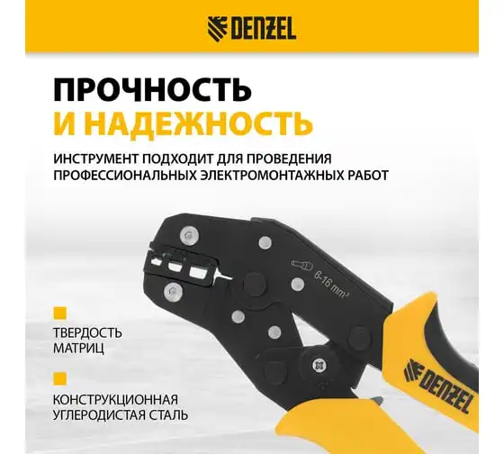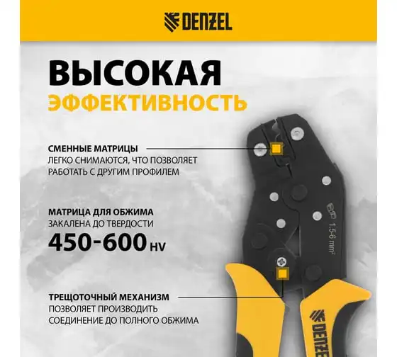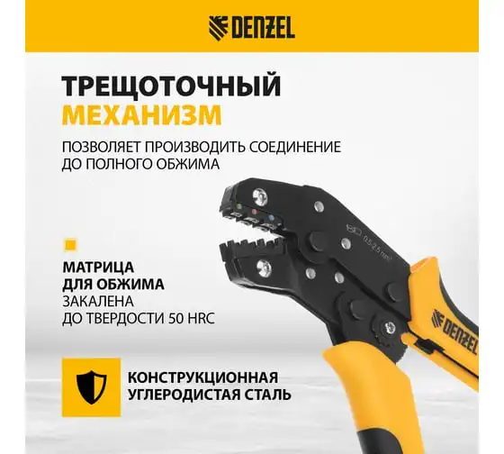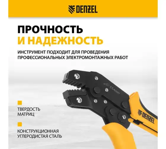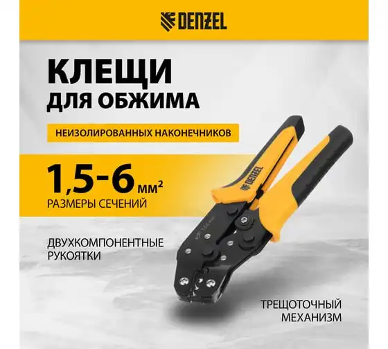 Клещи для обжима неизолированных наконечников НК и НВ, разъемов РП Denzel 1.5 - 6 кв. мм 17746