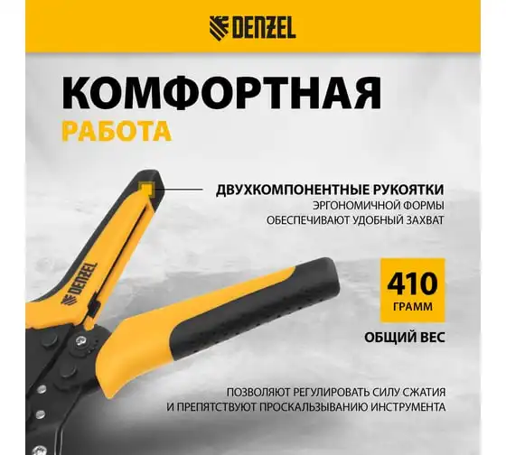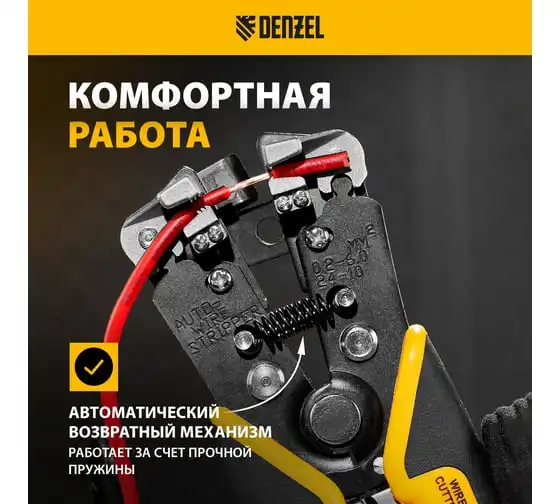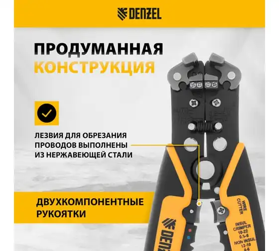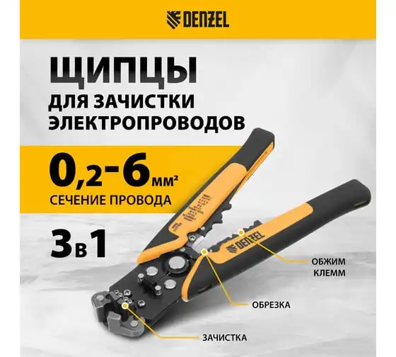 Щипцы для зачистки электропроводов Denzel 0.2-6 кв. мм, функция обрезания проводов 17742