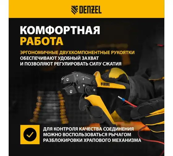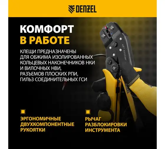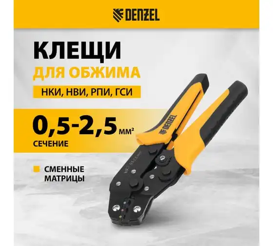 Клещи для обжима изолированных наконечников НКИ и НВИ, разъемов РПИ, гильз ГСИ Denzel 0.5-2.5 кв. мм 17747