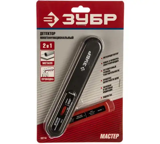 Многофункциональный тестер с детектором металла до 50мм , провода под напряжением 70-600В , встроенный фонарь Зубр 59710