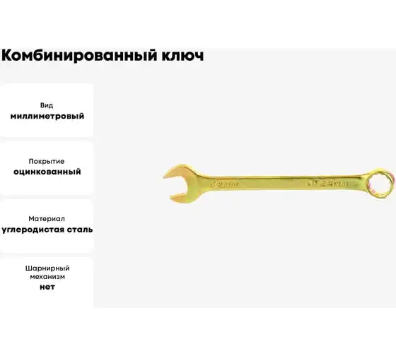 Комбинированный ключ СИБРТЕХ 24 мм желтый цинк// 14986