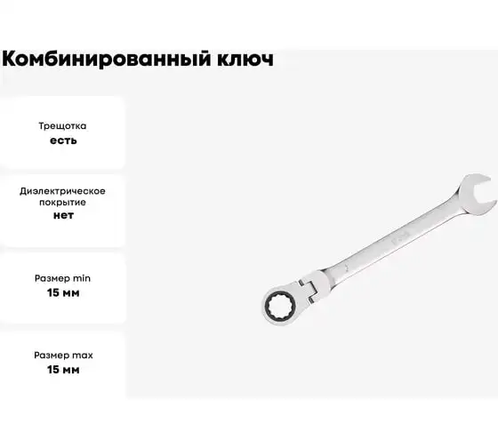 Комбинированный ключ STARTUL 15 мм с поворотной трещоткой PRO-7215