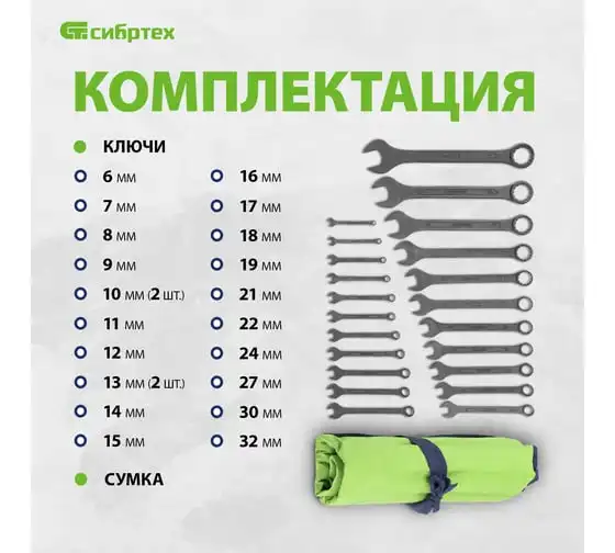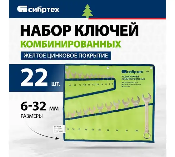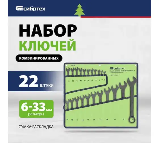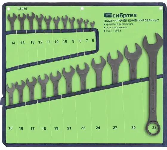 Набор ключей комбинированных СИБРТЕХ 6 - 32 мм, 22 шт., CrV, фосфатированные, ГОСТ 16983 15479
