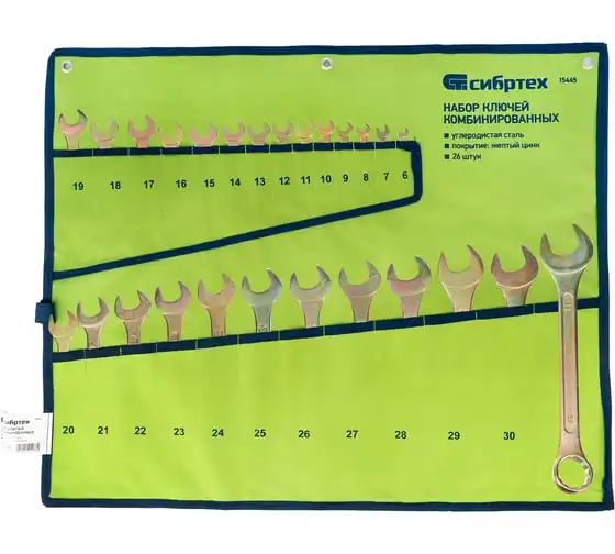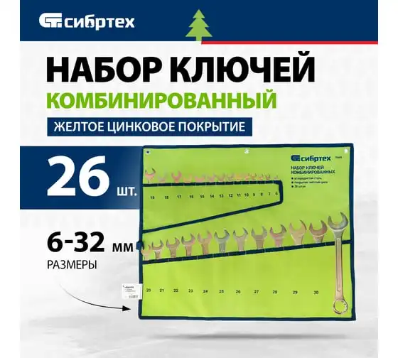 Набор комбинированных ключей СИБРТЕХ 6-32 мм, желтый цинк, 26 шт.15445
