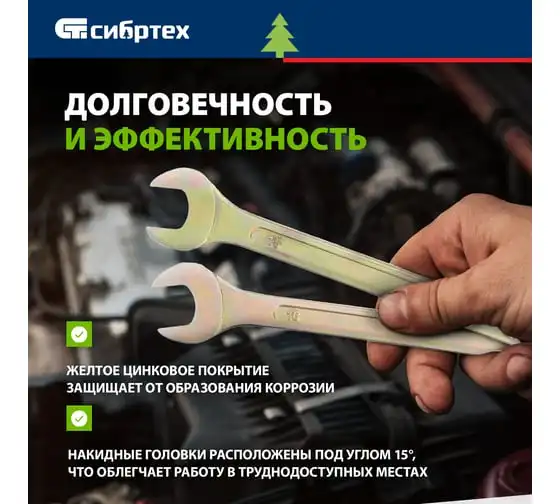Набор комбинированных ключей 8-19мм, 8шт СИБРТЕХ 15438