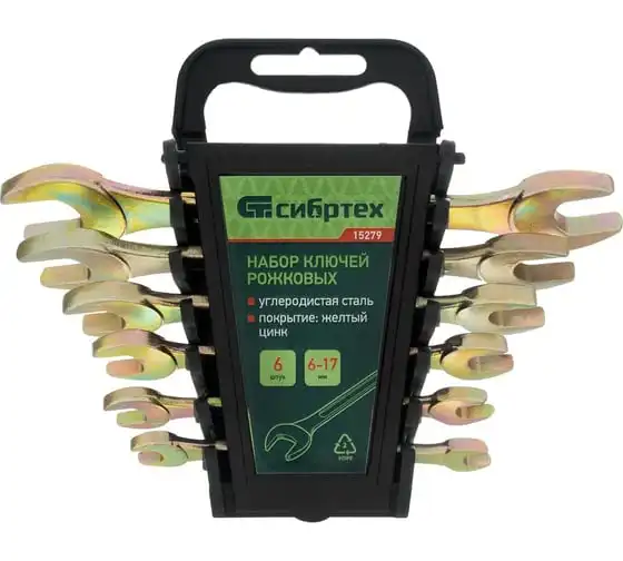 Набор рожковых ключей СИБРТЕХ 6-17 мм, желтый цинк, 6 шт. 15279