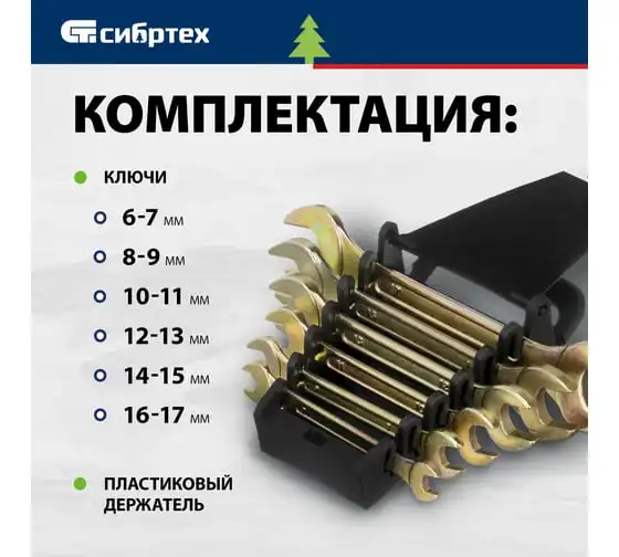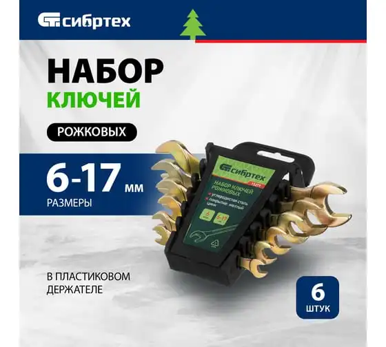 Набор комбинированных ключей СИБРТЕХ 6-17 мм, 6 шт. 15437