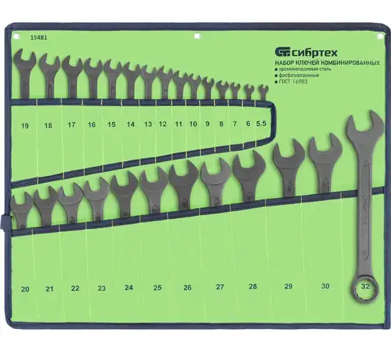 Набор ключей комбинированных СИБРТЕХ 5,5 - 32 мм, 27 шт., CrV, фосфатированные, ГОСТ 16983 15481