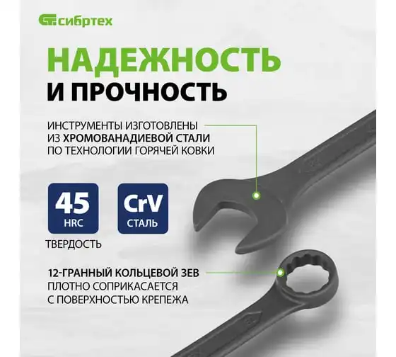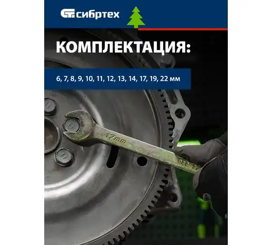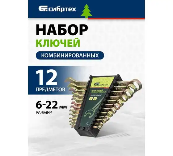 Набор комбинированных ключей СИБРТЕХ 6-22 мм, 12 шт. 15439
