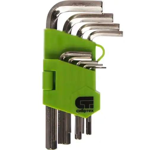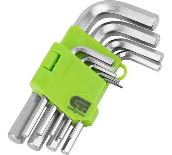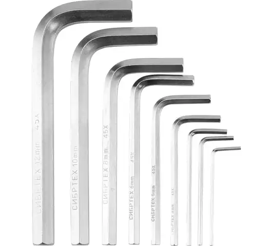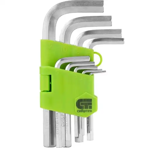 Набор имбусовых ключей HEX, 1.5-10мм, 45Х, СИБРТЕХ закаленные, 9 шт., короткие, никель.// 12317